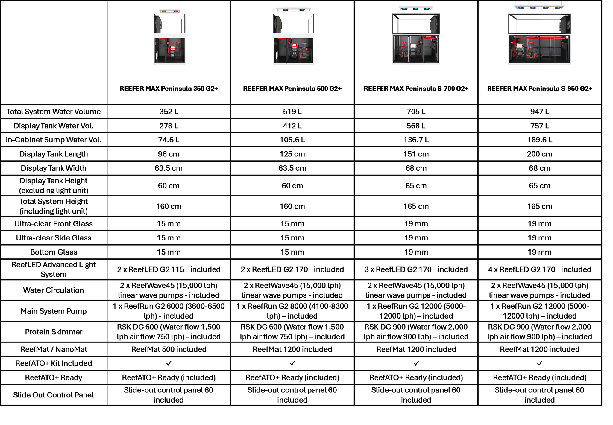 The REEFER MAX Peninsula G2+ popular size models combine the superior infrastructure and stylish room-divider format of the Peninsula G2+ models with our smart lighting, filtration and circulation devices. This allows you to benefit from the full Red Sea ecosystem experience and operate every aspect via your ReefBeat App, while marveling at the beauty of your corals from two long views.
